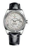 Часовая марка Rolex в 2023 году представила швейцарские мужские наручные часы Sky-Dweller 42 mm White Gold 336239-0003 в круглом 42-миллиметровом корпусе из белого золота с герметичностью на 100 метров. Мануфактурный автоматический механизм 9002 от Rolex имеет сертификат хронометрической точности хода, запас хода на 72 часа работы, индикатор даты и стрелки для индикации текущего времени. Также часы оснащены функцией второго времени. Над индикатором даты размещена циклопная линза Rolex, увеличивающая показания. Часовые метки и стрелки покрыты люминесцентным составом, что светится в темноте. Защитное стекло изготовлено из сапфирового кристалла и покрыто антибликовым составом. Безель вращающегося типа. Каучуковый ремень комплектуется застежкой из белого золота.