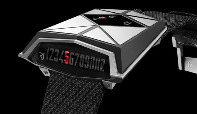 Характеризуется новинка титановым корпусом необычной трапециевидной формы с черным PVD-покрытием. Прямолинейный профиль и многогранная поверхность Spacecraft отражают эстетику космических кораблей. Черный вращающийся диск с отображенным на сапфировом стекле красным индикатором показывает минуты на верху корпуса, а линейный часовой дисплей выведен на его боковую часть.