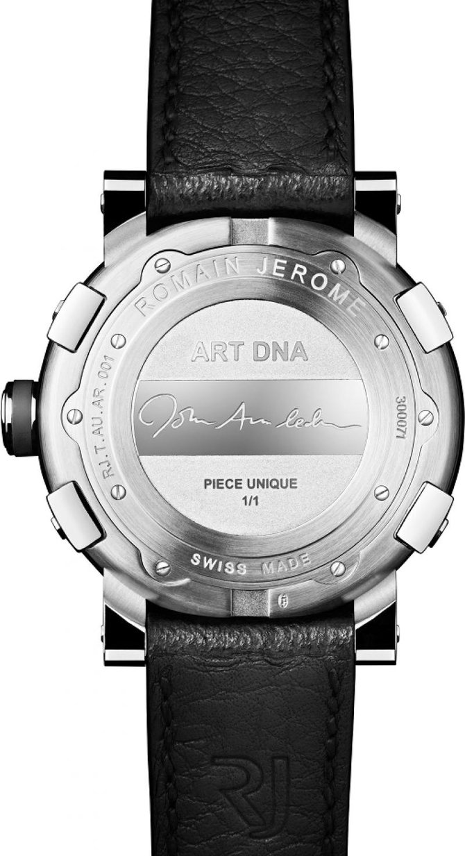 Новинка Art-DNA (Ref. RJ.T.AU.AR.001.01 до RJ.T.AU.AR.001.10) представлена в 46-миллиметровом корпусе из полированной нержавеющей стали. На задней крышке выгравирована подпись художника и надпись Piece Unique. Безель модели также выполнен из полированной стали.