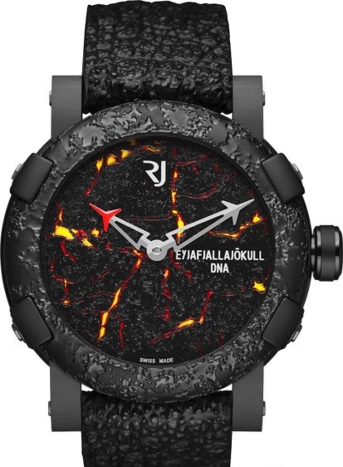 Лимитированным тиражом из 99 экземпляров выпущены швейцарские часы Romain Jerome Capsules Eyjafjallajokull RJ.V.AU.002.02. Часы достаточно необычны. Компания Romain Jerome посвятила их извержению исландского вулкана Eyjafjallajökull, которое произошло 14 апреля 2010 года. Корпус круглой формы произведен из нержавеющей стали с покрытием PVD. Герметичность корпуса - 30 метров. Автоматический калибр RJ002 с 48 часами запаса хода. Диаметр корпуса - 46 мм. На циферблате осуществляется индикация часов и минут. Стекло из сапфира. Застежка стальная. Стрелки с указателями, выполненными в виде стилизованных изображений самолетов.