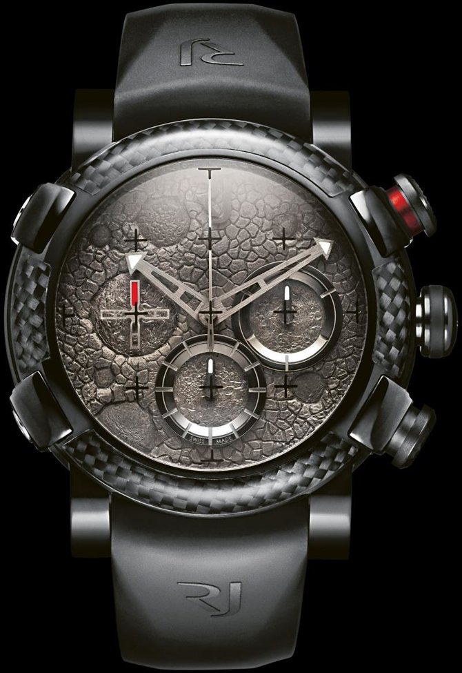Новая лимитированная модель Mood Chrono от швейцарского часового бренда Romaine Jerome, которая была представлена на международной выставке Baselworld-2012, выпускается в трех версиях: Black Mood chrono (Ref. RJ.M.CH.001.01), Steel Mood Chrono (Ref. RJ.M.CH.002.01) и Red Mood Chrono (Ref. RJ.M.CH.003.01). Ее выпуск посвящен исторической миссии Аполлона-11 на Луну, о чем свидетельствует и лимитированный тираж каждой из трех версий модели по 1969 экземпляров.