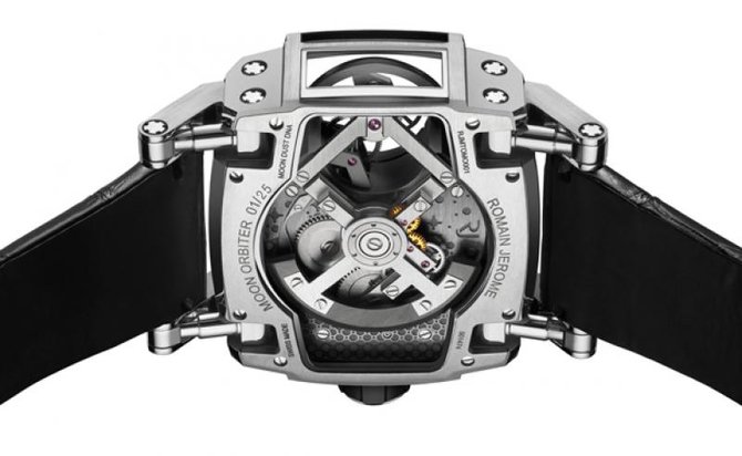 Частицы со Статуи Свободы и материалы с затонувшего Титаника уже использовались брендом ранее. На этот раз в новинке Moon Orbiter Romain Jerome используется архитектурный парящий турбийон с элементами шаттла Apollo 11, а также лунная пыль на циферблате.