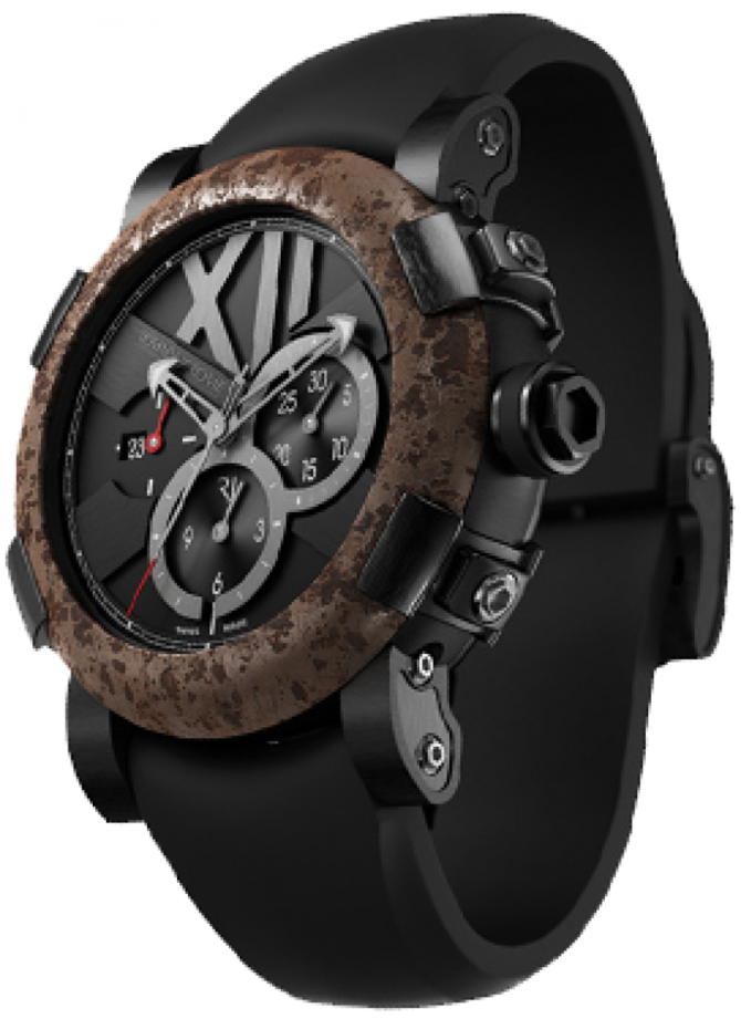 Видимо, мотивы Титаника неисчерпаемы, как и океанические глубины. Очередная модель от ROMAIN JEROME на любимую тему Titanic DNA - A la Grande. Да, здесь все большое: «тираж» 2012 экземпляров, аллегорически привязанный к столетнему юбилею гибели океанического лайнера, размер корпуса 50 мм в диаметре, что на 4 мм больше предыдущих моделей, и обилие, покрытой коррозией подлинной, стали из обшивки Титаника, на безеле. Циферблат с напылением угля использовавшегося на Титанике.