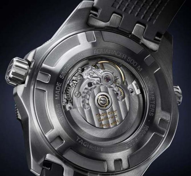 Aquaracer Calibre 5 представляет собой профессиональные часы для занятий водными видами спорта.Корпус водонепроницаем на глубинах до 300 метров. Метка с люминесцентным покрытием в положении «12 часов» обеспечивает оптимальную читаемость показаний даже при плохом освещении. Циферблат с оригинальным рельефным дизайном выполнен в черном или серебристом цвете. Настоящий инструмент для подводных погружений.