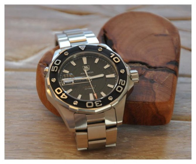 Часы Aquaracer с водонепроницаемостью до 500 метров, которая была проверена в серии суровых испытаний. В положении «10 часов» находится автоматический гелиевый клапан, регулирующий давление внутри корпуса. В дополнение к стандартным для всего модельного ряда мерам по улучшению читаемости показаний в условиях плохой видимости, таким как люминесцентное покрытие стрелок, у часов Aquaracer 500M окошко даты накрыто увеличительным стеклом.