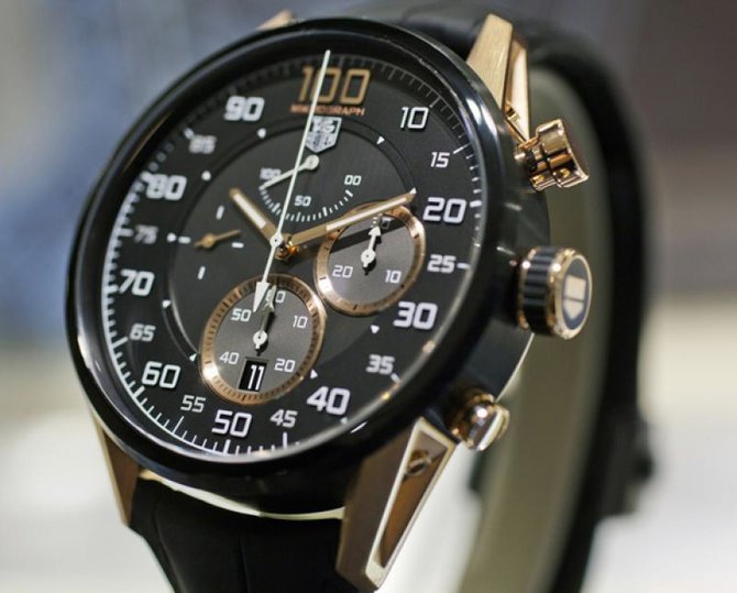 TAG Heuer Carrera Mikrograph Avant Garde развивает концепт двойной цепной передачи, внедренный в производство в январе 2011 г. Эта технология позволяет устранить негативное влияние часов и хронографа друг на друга в интегрированном механизме и открывает путь к прохождению сертификации C.O.S.C. В этой новаторской модели одновременно используются сразу два спусковых механизма – с частотами баланса 28 800 и 360 000 полуколебаний в час. Своей неподражаемой точностью она обязана двум не зависящим друг от друга кинематическим цепям, одна из которых работает с обычной, а другая – с высокой балансовой частотой. Корпус часов изготовлен из титана, его диаметр 45 мм. Механизм хронографа обладает запасом хода 42 часа.