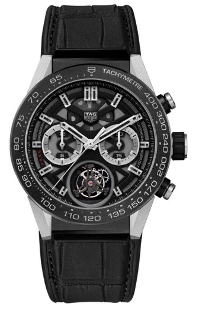 Перед Вами сертифицированный COSC автоматический хронограф TAG Heuer Carrera Heuer-02Тс парящим турбийоном, выполненным из титана и карбона. Корпус модели изготовлен из титана. Механизм с частотой баланса в 28 800 полуколебаний в час (4 Гц). Запас хода - 65 часов. И механизм, и корпус модели выполнены вручную. Спираль турбийона предоставлена компанией Atokalpa специально для TAG Heuer. Ремешок пошит из черной кожи аллигатора и размещен на черной каучуковой подкладке в фирменном стиле марки TAG Heuer. Часы водонепроницаемы на глубине до 100 метров.