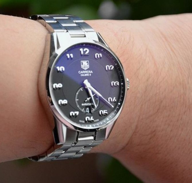 Часы Carrera Heritage Calibre 6 воплощают 150-летнюю часовую традицию TAG Heuer и напоминают об утонченной элегантности минувшей эпохи. Циферблат с отделкой в традиционной технике «flinqué» представляет собой настоящее произведение искусства. Спиральный узор на счетчике секунд, полированные стрелки и цифры придают циферблату особую выразительность.