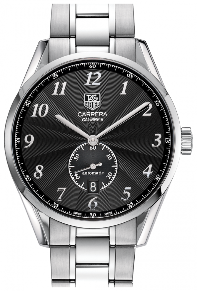 Часы Carrera Heritage Calibre 6 воплощают 150-летнюю часовую традицию TAG Heuer и напоминают об утонченной элегантности минувшей эпохи. Циферблат с отделкой в традиционной технике «flinqué» представляет собой настоящее произведение искусства. Спиральный узор на счетчике секунд, полированные стрелки и цифры придают циферблату особую выразительность.