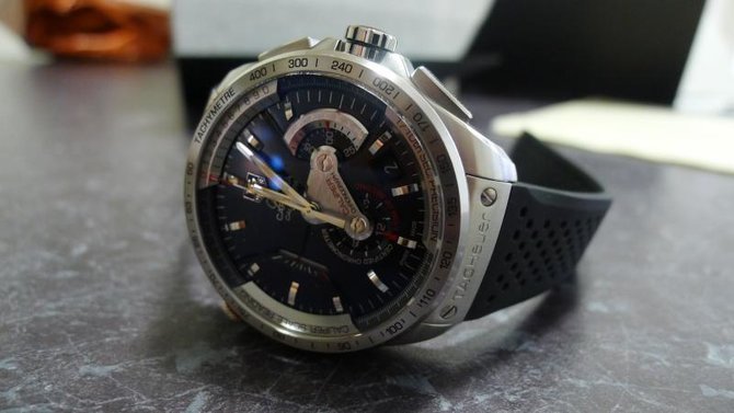 Автоматический хронограф Grand Carrera Calibre 36 RS Caliper – первый в мире механический хронограф, который способен замерять и отображать десятые доли секунды. Не имеющая аналогов вращающаяся шкала Caliper с разметкой десятых долей секунды позволяет мгновенно считывать результаты хронометража. Сертифицированный механизм C.O.S.C. работает с поражающей воображение частотой 36 000 полуколебаний в час, что позволяет центральной секундной стрелке передвигаться с интервалом в десятую доли секунды. Инновационная система отображения показаний Grand Carrera Rotating System, вдохновленная гоночными болидами GT, заменяет традиционные стрелки дисковыми указателями, выполненными в стиле индикаторов на приборной доске автомобиля. Результат – оптимальная читаемость показаний и элегантный дизайн.