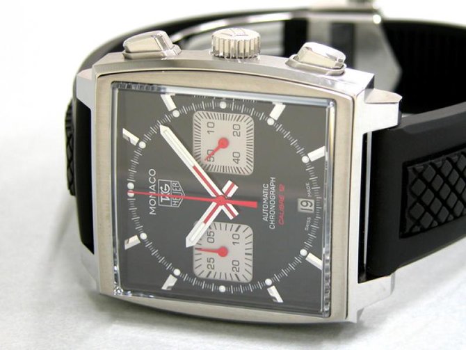 Дизайн заводной коронки воспроизводит конструкцию коронок, свойственную моделям первых выпусков. Логотипы Monaco и Tag Heuer.