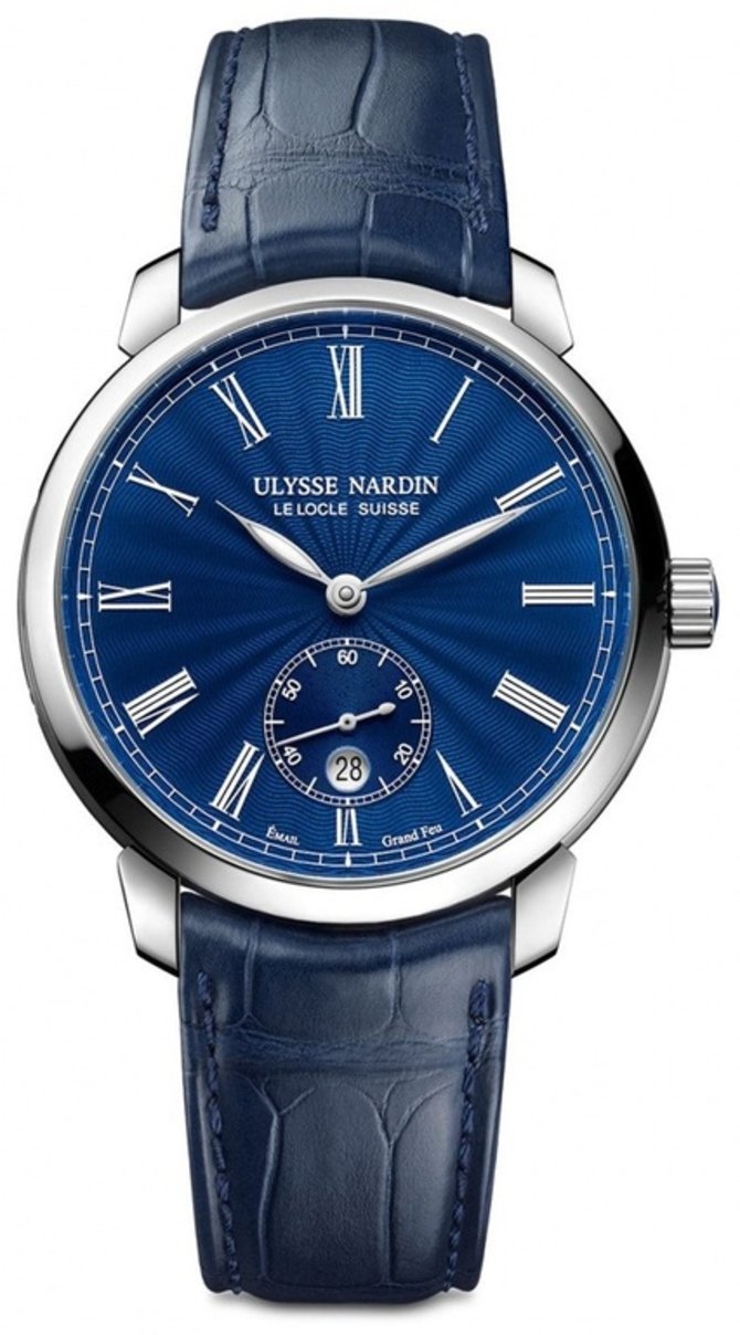 Благодаря мануфактурному автоматическому калибру UN-320 на циферблате синего цвета, гильошированном вручную специалистом компании Ulysse Nardin, расположены индикаторы классического набора классических швейцарских наручных часов - часы, минуты, секунды, дата. Защищен циферблат стеклом из сапфира с нанесением на него антибликового покрытия. Установленный механизм имеет двухсуточный уровень запаса хода. На часовую и минутную стрелки нанесено люминесцентное покрытие белого цвета, которое обеспечивает комфортную индикацию данных в темноте. Корпус с 30-метровым уровнем водонепроницаемости сделан из нержавеющей стали.