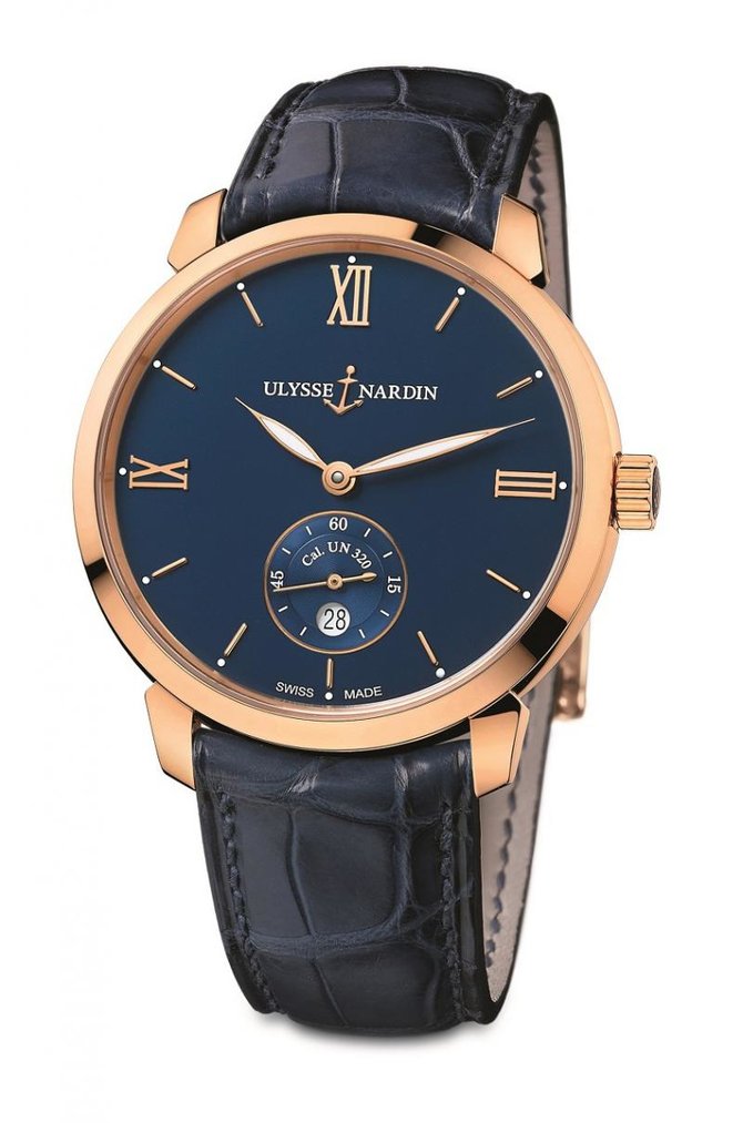 Престижные швейцарские часы класса "люкс" Ulysse Nardin Small Second представили на международной часовой выставке Basel 2015, которая ежегодно проводится в городе Базеле (Швейцария) для презентации элитных швейцарских часов. Отличия модели: вынесенная на позицию 6-ти часов малая секундная стрелка, объединенная с апертурой даты. Корпус часовой новинки произведен из розового золота; диаметр - 39 миллиметров; герметичность - 30 метров. Механизм: мануфактурный, с автоподзаводом, запас хода - 42 часа. Индикация: часы, минуты, секунды, дата. Модель отмечена официальным институтом хронометрии (C.O.S.C.) как хронометр. Элементы циферблата вместо со стрелками и часовыми метками выполнены из розового золота. Будущий владелец получит модель, укомплектованную синим ремешком, пошитым из кожи луизианского аллигатора, наделенным классической пряжкой из розового золота.
