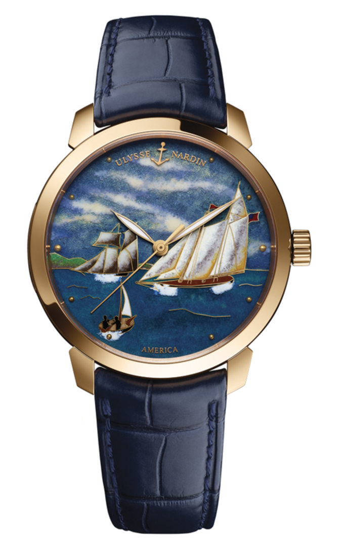 Швейцарские часы от компании Ulysse Nardin выполнены с соблюдением всех классических часовых традиций. Круглый корпус, диаметром 40 миллиметров, произведен из качественного 18-каратного розового золота. На художественном циферблате, выполненном вручную мастерами марки Ulysse Nardin, размещен традиционный функциональный набор для повседневных часов: часы, минуты, секунды. В представленной модели установлен калибр UN-815, который работает от автоматического подзавода. Механизм имеет официальный сертификат хронометра, выданный швейцарским институтом хронометрии COSC. Герметичность корпуса часов - 50 метров. Циферблат оберегает натуральное сапфировое стекло. Часы укомплектованы ремешком из кожи крокодила с классической застежкой, соответствующей материалу корпуса. Лимитированный тираж - 30 экземпляров.