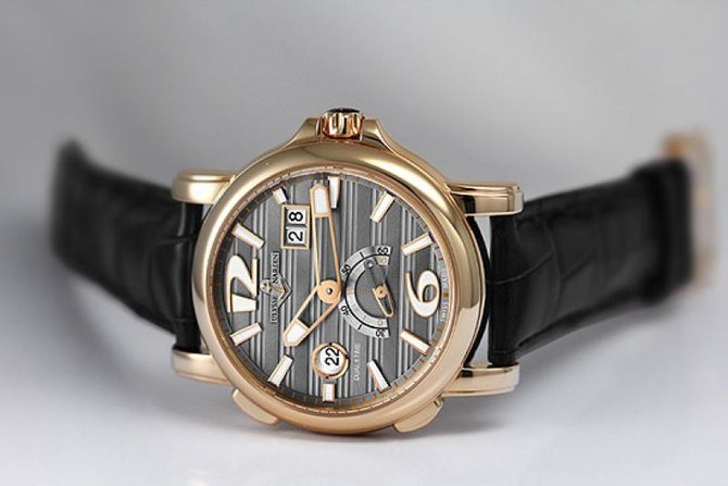 Новинка 2010 года. Механизм автоматический, Калибр UN-24, имеет запас хода 42 часа. Корпус выполнен из розового золота 18к., размером 42 мм. Циферблат серого цвета. Стрелки и метки покрыты люминесцентным составом. Функции:часы, минуты, секунды, увеличенная дата. Ремешок из кожи крокодила черного цвета. Водонепроницаемость 100 м. Уникальный механизм быстрой коррекции времени, индикатор постоянного «домашнего» времени, большой указатель даты. Фиксируемая на резьбе заводная головка.