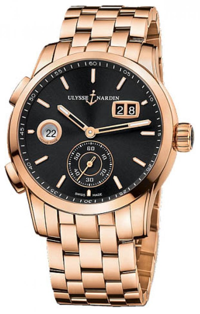 Новая модель Dual Time Manufacture от компании Ulysse Nardin выпущена в двух вариантах: в 18-каратном розовом золоте и в нержавеющей стали. У новинки круглый полированный корпус, диаметром 42 мм, водонепроницаемый до 30 метров. На торце рифленой заводной головки, расположенной на 3 часах, имеется изображение эмблемы бренда Ulysse Nardin. Сапфировое стекло установлено на лицевой стороне корпуса (с антибликовым покрытием) и на его задней крышке. Циферблат черного или серебристого цвета с накладными гранеными часовыми индексами, часовой и минутной стрелками, покрытыми люминесцентным составом белого цвета. Модель оснащена мануфактурным швейцарским автоматическим механизмом Ulysse Nardin UN-334, на 49 камнях, с балансовой частотой 28800 полуколебаний в час (4 гц), 48-часовым запасом хода, с кремниевым спуском, запатентованным инерционным маховиком с кремниевым волоском, функциями индикации часов, минут (посредством соответствующих центральных стрелок), секунд (на малом боковом циферблате, расположенном на 6 часах). Большой указатель даты (на 2 часах) остается традиционным для коллекции Dual Time. Элегантные кнопки переключения часового пояса, расположены на корпусе на 8 и 10 часах. При нажатии кнопок часовая стрелка меняет положение, в то время как указатель домашнего времени (на 9 часах) продолжает свой 24-часовой цикл. Поставляется на браслетах из 18-каратного розового золота или из нержавеющей стали, а также на кожаных ремешках с застежками из 18-каратного розового золота или из нержавеющей стали.