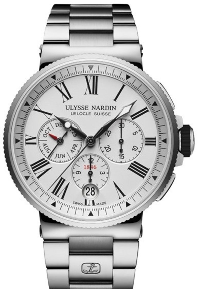 Часы с функцией хронографа. Большая полированная центральная секундная стрелка. 30-минутный счетчик, расположенный в положении «3 часа». 12-часовой счетчик, расположенный в положении «3 часа». Также часы имеют функцию годового календаря, которая будет точно учитывать текущее количество дней в каждом месяце, за исключением 29-го февраля високосного года. Окно даты находится в положении «6 часов». Месяц отображается в районе отметки "9 часов". Красная стрелка указывает состояние текущего месяца. Модель Ulysse Nardin функционирует на собственном механизме UN-153 с балансовой частотой 28 800 пк в час, содержит 53 драгоценных камня, всего состоит из 322 частей и имеет примерный запас хода на 52 часа. Корпус сделан из полированной нержавеющей стали. Заводная головка с рифленым резиновым кольцом. Прямоугольные кнопки хронографа с резиновой вкладкой.