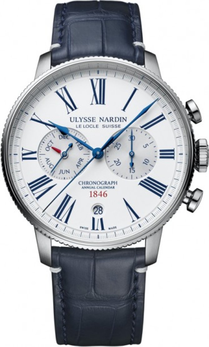 Швейцарская часовая марка Ulysse Nardin представляет модель наручных часов Marine Torpilleur Annual Chronograph 44 mm 1533-320LE-0A-175/1B. Корпус часов произведен из нержавеющей стали, размером 44 мм. Автоматический мануфактурный механизм UN-153 с 60-часовым запасом хода обеспечивает индикацию таких данных: часы, минуты, секунды, дата, запас хода, хронограф. Под сапфировым стеклом с антибликовым составом вороненые стальные стрелки для индикации данных. Часы комплектуются ремнем синего цвета из кожи аллигатора и классической застежкой из нержавеющей стали. Стальной корпус водонепроницаем до 50 метров. Ограниченный тираж - 300 экземпляров на весь мир.