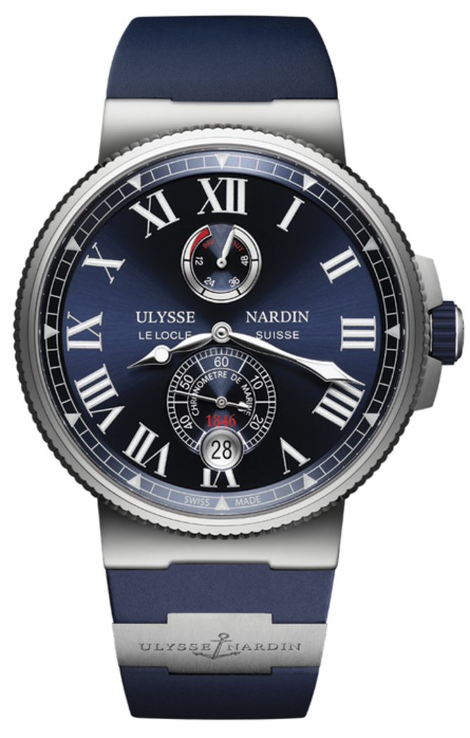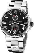 Швейцарский механический хронометр, официально сертифицированный COSC (институт хронометрии), представленный знаменитым брендом Ulysse Nardin в круглом 45-миллиметровом корпусе из нержавеющей стали с 200-метровой герметичностью. Внутри водостойкого корпуса установлен мануфактурный калибр UN-118 с автоподзаводом, обладающий 60-часовым запасом хода, индикатор которого расположен на основном циферблате. Кроме уровня запаса хода, на циферблате также индицируются часы, минуты, секунды и дата. Индикация секунд осуществляется на отдельном субциферблате выше отметки "6 часов" и окошка даты. Уровень безопасности повышает качественная завинчивающаяся заводная головка. Циферблат защищен прочным сапфировым стеклом. Каучуковый ремешок, которым укомплектована данная модель швейцарских часов Ulysse Nardin, дополнен двумя вставками из нержавеющей стали - пластиной с эмблемой марки Ulysse Nardin и раскладывающейся застежкой для фиксации часов на руке.