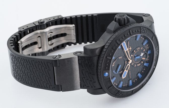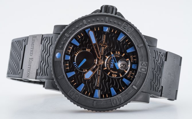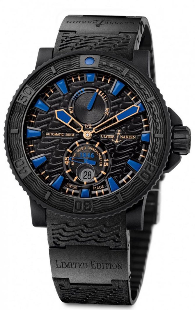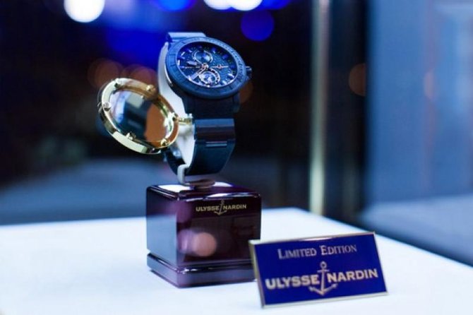 20 февраля 2012г часовая компания Ulysse Nardin представила великолепную коллекцию хронометров Plushenko Champion’s Diver. Эти наручные часы были созданы вместе с олимпийским чемпионом Евгением Плющенко. Презентация состоялась в Москве, были приглашены спортсмены, заслуженные деятели Мира искусств, а так же представители бизнес-элиты. Идея создать наручные часы Plushenko родилась у Рольфа Шнайдера в 2010 году, после знакомства со спортсменом. На одном из подготовительных этапов (чертежи, обсуждение технических тонкостей и дизайна) Евгений Плющенко специально посетил часовую фабрику Ulysse Nardin, что бы согласовать все детали лично. По его замыслу желтые цветовые акценты на циферблате должны напоминать о золотых медалях, а синие - цвет льда на котором они были заработаны. Наручные часы Plushenko Champion’s Diver разработаны на базе калибра UN 26, используемого традиционно для коллекции Marine. 45,8-миллиметровый корпус новой модели покрывает вулканизированный каучук. Водонепроницаемость часов составляет 200 метров, что позволяет не снимать их с запястья даже во время занятий морскими видами спорта. Поставляются на ремешке из каучука с керамическими вставками, на одной из которых выгравировано Ulysse Nardin, а на другой - Limited Edition. Данные часы хоть и выпущены лимитированной серией 250 экземпляров однако имеют почти близнеца в виде модели Maxi Marine Diver Boutique Ref. 263-95LE. Последние были созданы в конце 2011 года специально для монобрендовых бутиков Ulysse Nardin. Разница с новыми наручными часами только в деталях цветового оформления, а в общем модели очень похожи друг на друга, если не сказать, что почти идентичны в плане дизайна. Разница, пожалуй, лишь в использовании насыщенного синего цвета для стрелок и часовых меток, а так же выделении золотом разметки на безеле.