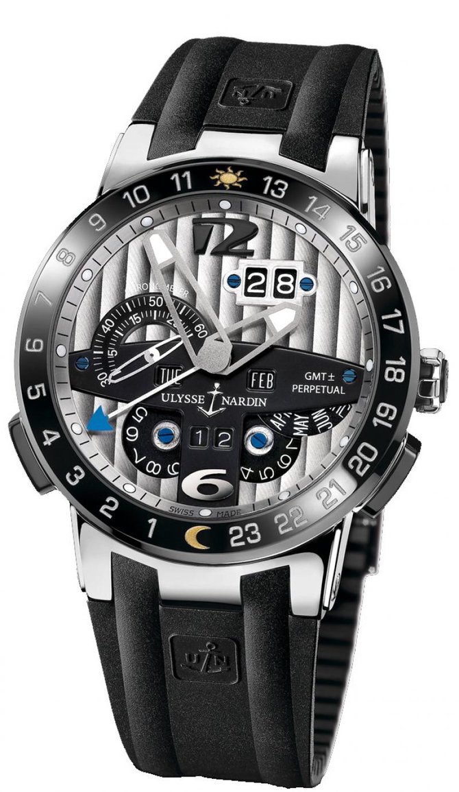 El Toro – новый дерзкий вызов от «Улисс Нардан», сочетание традиции часового дела с будущим, объединение высоких технологий и классического дизайна. Новое творение безупречно как в техническом отношении, так и в эстетическом. Опираясь на богатое наследие, «Улисс Нардан» соединил материалы корпуса модели Moonstruck с механизмом легендарного вечного календаря. El Toro – революционный прорыв часового искусства, причина тому – сложность механизма и несравнимое удобство применения. Безель и кнопки выполнены из керамики. Скелетолизированные стрелки позволяют прекрасно видеть календарь, большой указатель даты, дня недели, месяца, год а и 24- часовой индикатор местного времени. За биением сердца этого механического шедевра можно наблюдать сквозь сапфировое стекло задней крышки корпуса. • Механизм вечного календаря, позволяет корректировать вперед или назад все календарные указатели: дату, месяц, год. Настройка осуществляется поворотом заводной головки в одну или другую сторону даже на 2100 год. • Часовая стрелка в считанные секунды устанавливается на новое местное время нажатием на кнопки (+) или (-), которые расположены в положении «4 часа» и «8 часов». Одно нажатие соответствует одному часу. При этом не нужно снимать часы с руки и останавливать их ход. • Большой указатель даты, дня, месяца и года мгновенно передвигаются вслед за часовой стрелкой, как вперёд, так и назад. • 24-часовая стрелка показывает домашнее или местное время. • Ротор из белого золота обеспечивает автоматический подзавод и запас хода в 45 часов. Сертификат Хронометра (C.O.S.C.) Вечный календарь Perpetual GMT± прошёл строгую проверку Швейцарского Института Хронометрии и получил официальный сертификат, говорящий о точности и надёжности этого уникального произведения механического искусства. Часы El Toro выпущены лимитированной серией 500 экземпляров, материал - платина.