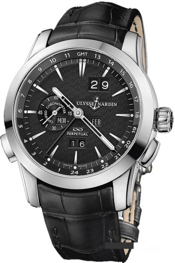 Классическая модель от часовой компании Ulysse Nardin с функцией вечного календаря. Корпус из платины, размером 43 мм и водонепроницаемостью до 30 метров. Мануфактурный швейцарский механизм с автоматическим заводом UN-32, на 34 камнях, с 48-часовым запасом хода. Механизм является сертифицированным хронометром C.O.S.C. Компания Zenith при выпуске своего знаменитого хронографического калибра El Primero использует покупную балансовую пружину, что не мешает ему именоваться мануфактурным. Еще более сложная ситуация складывается с другими деталями часов: корпусом, циферблатом, стрелками, стеклами, браслетами. Здесь полная автономия тем более невероятна, поскольку специфика производства сапфировых стекол имеет мало общего с металлообработкой. Время едино для всех и необратимо в своем течении; следовательно, использовать его необходимо с максимальной эффективностью и регистрировать с предельной точностью. Описанная растущая специализация функций часов способствует растущей эффективности отдельных «участков» социального и производственного процесса.