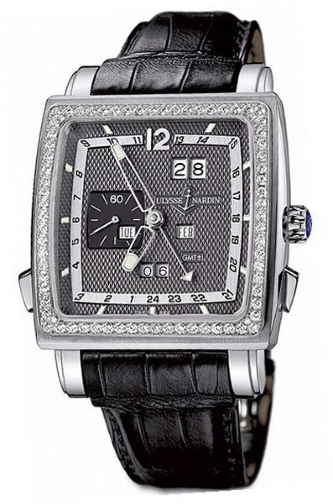 Впервые часы под маркой Ulysse Nardin были созданы в 1846-м году. Необычное название бренда — не что иное, как имя его создателя. Швейцарский мастер Улисс Нардан принадлежит к династии часовщиков, что на его родине, надо сказать, не редкость. Профессии он обучался не только у собственного отца, которого звали Леонарда-Фредерика Нардана, но и двух именитых наставников, очень уважаемых в те времена — Луи-Жан-Ришара ди Бресселя и Фредерика-Вийома Дюбуа. Последний-то как раз и слыл специалистом по части изготовления астрономических часов и приборов для навигации. С легкой руки Дюбуа молодой мастер Улисс Нардан и заинтересовался морскими хронометрами. Дополнительная информация о модели: водонепроницаемость 50 м, увеличенная дата, безель из 74-х белых бриллиантов