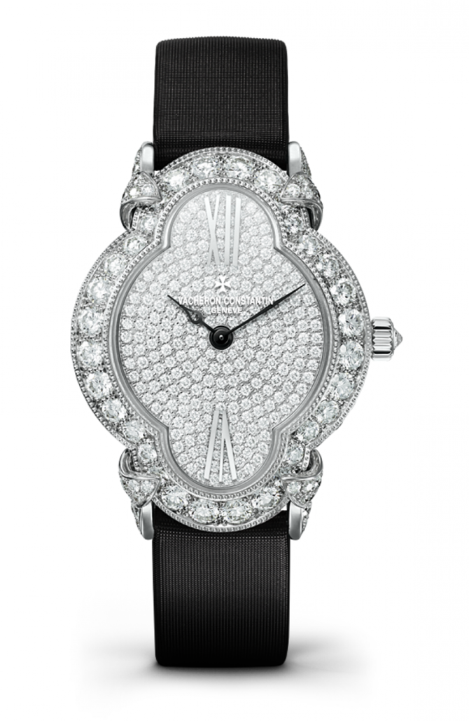 Шикарная женская модель механических швейцарских часов от легендарной швейцарской часовой мануфактуры Vacheron Constantin в корпусе из белого 18-каратного золота, инкрустированном 375 белыми бриллиантами. Браслет из кожи миссисипского аллигатора с раскладывающейся застежкой. Циферблат часов защищен сапфировым стеклом. Водонепроницаемость корпуса - 30 метров. Модель функционирует на швейцарском мануфактурном механизме с ручным подзаводом, Калибр 1055. Толщина Калибра - 2.10 миллиметров; диаметр - 15.7 миллиметров. Он состоит из 115 элементов, 21 из которых - драгоценные камни. Частота механизма - 3 Гц (21 600 полуколебаний в час). Запас хода - 40 часов. На циферблате указывается текущее время в часах и минутах. Толщина золотого корпуса - 7.4 миллиметров.