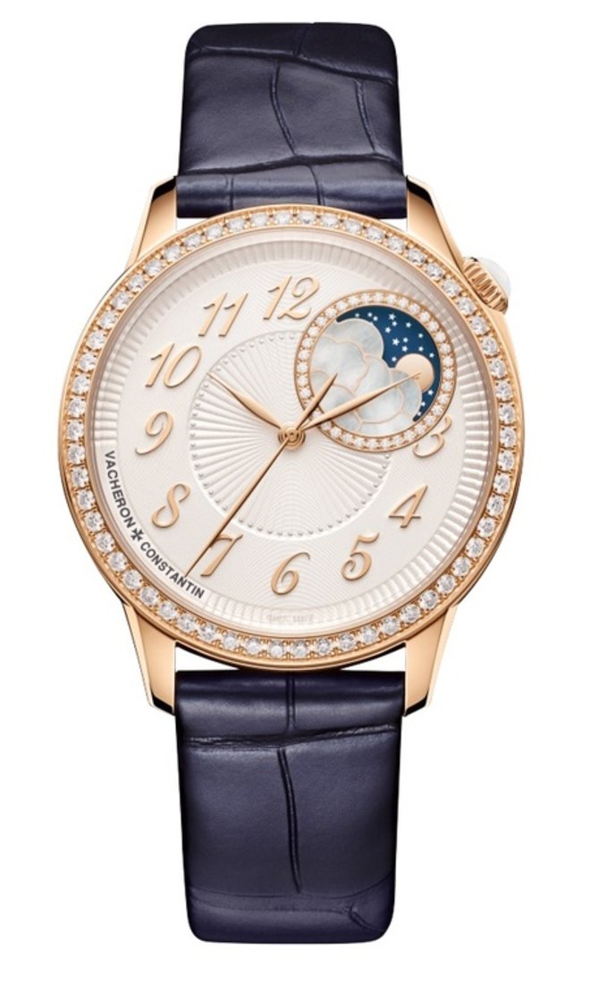 Швейцарская часовая компания Vacheron Constantin презентовала модель ювелирных швейцарских наручных часов Égerie 8005F/000R-B498. В круглом 37-миллиметровом корпусе из розового золота, украшенном белыми бриллиантами классической огранки, расположен калибр 1088 L с автоподзаводом и запасом хода на 40 часов. На руке часы фиксируются ремнем из кожи аллигатора с золотой застежкой. Под защитным сапфировым стеклом, на гильошированном циферблате показываются часы, минуты, секунды и фазы Луны. Корпус с влагозащитой до 30 метров. Задняя крышка из сапфирового кристалла показывает работу установленного механизма.