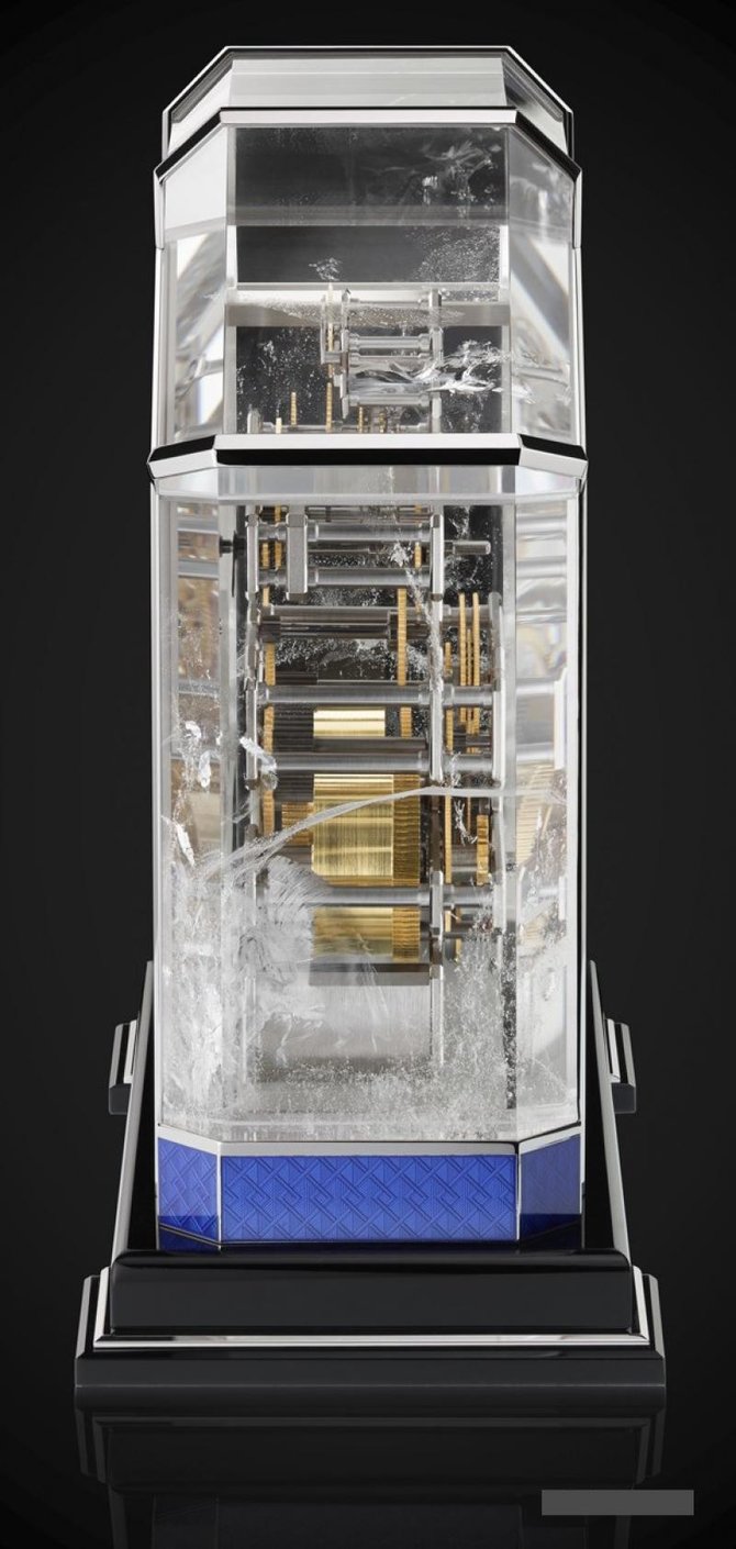 Данная новая модель представлена только в бутиках Vacheron Constantin. Она изготовлена из горного хрусталя и серебра. Внутри крупного комбинированного корпуса настольных часов поместился механический Калибр 9260, работающий от ручного завода (посредством заводного ключа); его размеры: 106 x 131.1 x 58.7 мм, запас хода модели - 720 часов, а это 30 календарных дней, частота баланса - 2,5 Гц, что составляет 18 000 колебаний в час. Сам механизм состоит из 106 элементов, 41 из них - драгоценные камни. Прозрачная модель циферблата индицирует часы, минуты и уровень впечатляющего запаса хода. Обратите внимание, что увеличительное стекло, перчатки и два заводных ключа идут в комплекте. Серия ограничена 12-ю экземплярами. Механические часы точны и надёжны. Точность механических часов зависит от типа механизма, от персональных привычек владельца часов и от изменений температуры. Высокое качество и современный дизайн, и в то же время, оригинальность и креативность. Точные, функциональные и прочные часы дарят ощущение надежности, их классический дизайн, открытый новым веяниям, подчеркивает безупречность стиля.