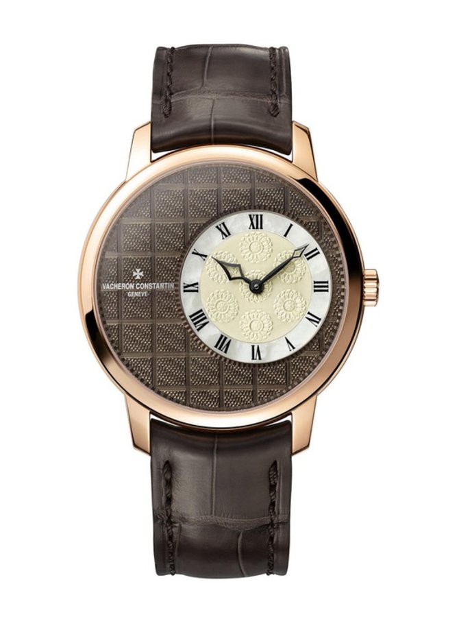 Художественная коллекция "Metiers d`Arts" часовой компании Vacheron Constantin в 2016 году приняла в свой состав элегантную классическую модель "Elegance Sartoriale" в круглом 40-миллиметровом корпусе из 18-каратного розового золота, в котором установлен мануфактурный калибр 1400 с ручным подзаводом, указывающий на художественном циферблате текущее время - часы и минуты. Толщина корпуса составляет всего 8.2 мм. Коричневый гильошированный циферблат с принтом "оконное стекло" - результат проделанной ручной работы мастеров мануфактуры Vacheron Constantin. Механизм обладает 40-часовым запасом хода. Ремешок к представленной модели пошит из натуральной кожи аллигатора и оснащен классической застежкой из розового золота. Герметичность корпуса - 30 метров. Цена на представленную модель "Elegance Sartoriale", рекомендованная производителем, составляет 53600 $.