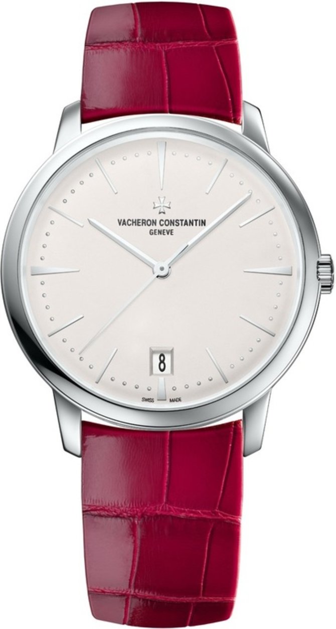 Классические швейцарские часы Contemporaine Lady Automatic 4100U/001G-B181 от Vacheron Constantin, пополнившие коллекцию Patrimony, были выпущены брендом в небольшом корпусе круглой формы, диаметром 36 мм и толщиной 8.1 мм, из белого 18-каратного золота. Внутри него заключен мануфактурный калибр с автоматическим подзаводом 2450 Q6 мануфактурной сборки инженеров Vacheron Constantin. На минималистическом циферблате с метками и стрелками из белого золота указываются данные часов, минут, секунд и даты. Стекло из сапфирового кристалла защищает циферблат от повреждений. Ремень из кожи аллигатора бардового цвета в комплекте. Застежка из белого золота.Механизм имеет 40 часов запаса хода. Водостойкость на уровне 30 метров.