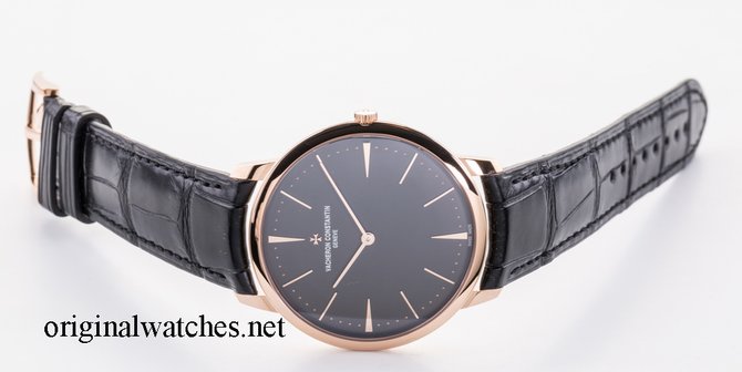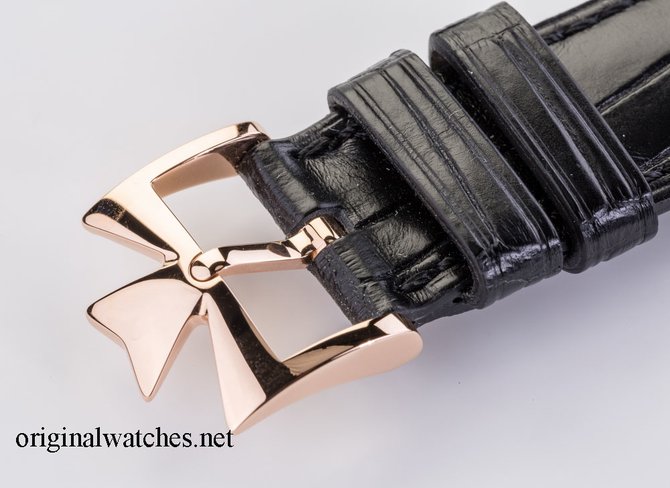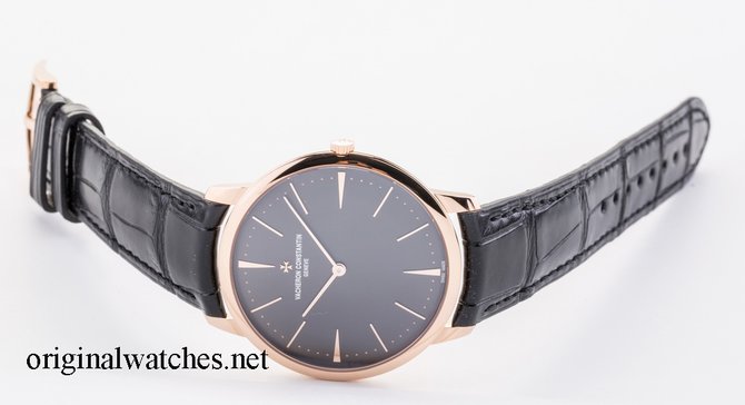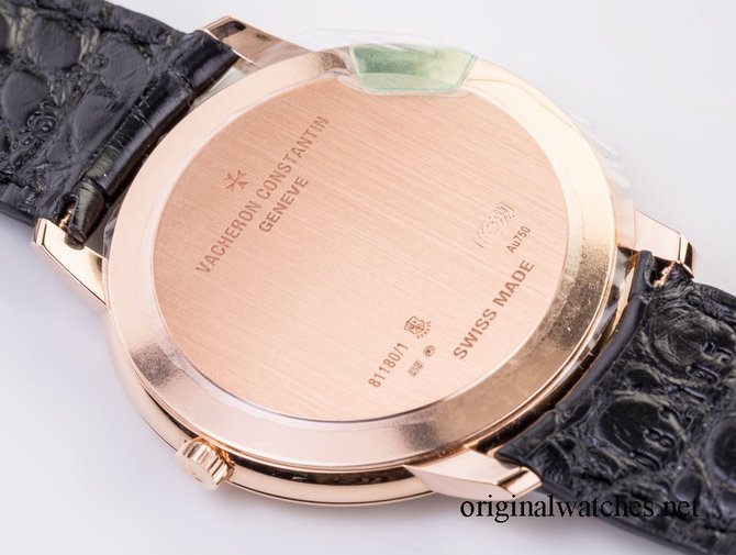 Бренд Vacheron Constantin - торговая марка швейцарских часов класса "люкс". Ее по праву считают одной из числа самых дорогостоящих, престижных марок с уникальным, в большей мере, традиционным дизайном. Она основалась 17 сентября 1755 года Жан-Марком Вашероном. Больше всего пользовалась популярностью среди аристократии Франции и Италии. Есть сведения, что жёны Наполеона, Жозефина и Мария Луиза, являлись клиентками Вашерона. Первый магазин Vacheron & Constantin в швейцарской Женеве был открыт в 1906 году (амперсанд из названия марки был убран уже в 1970 году). В 1996 году часовым брендом заинтересовалась Richemont Group и вскоре его приобрела. Данные швейцарские наручные часы смело можно считать предметом для гордости классической часовой линии Patrimony, чья элегантность абсолютно неподвластна времени. Новая модель выпущена в корпусе из розового золота. Задняя часть корпуса защищена, как, впрочем, и лицевая, сапфировым стеклом. Благодаря ему, владелец этих практичных наручных часов получает возможность следить за работой механизма и любоваться его декоративной отделкой. Механизм с автоподзаводом, запас хода - 40 часов, балансовая частота - 28 800 п/к в час.