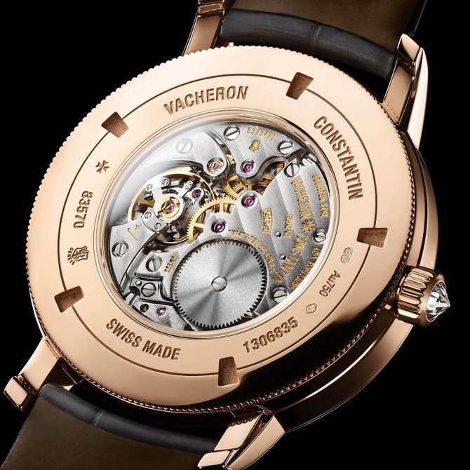 Traditionnelle Moon Phase and Power Reserve представлены в корпусе из розового золота 18к. Очаровательный и мерцающий белый жемчужный циферблат обрамлен изящными линиями круглого корпуса диаметром 36 мм, инкрустированного 81-м белым бриллиантом общим весом 1.2 ct. Украшенные бриллиантами безель, ушки и коронка, незаметно подчеркивают эстетические коды коллекции Traditionnelle, к которой принадлежит модель: минутная шкала в виде железной дороги, сапфировое стекло на задней завинчивающейся крышке корпуса, золотые стрелки dauphine и прямоугольные часовые метки. Сдержанная элегантность этой модели сочетается с серым ремешком из крокодиловой кожи. Сквозь прозрачное сапфировое стекло на задней крышке корпуса видно престижный механизм с ручным заводом, на котором стоит Женевское клеймо, которое присваивается в случае соответствия часов строгим критериям, и лишь немногие мануфактуры могут похвастать этим знаком качества. Женевское клеймо является гарантом исключительно ручной отделки механизма. Плоские поверхности Калибра 1410 украшены женевскими волнами, острые края и винтики скошены и отполированы вручную.
