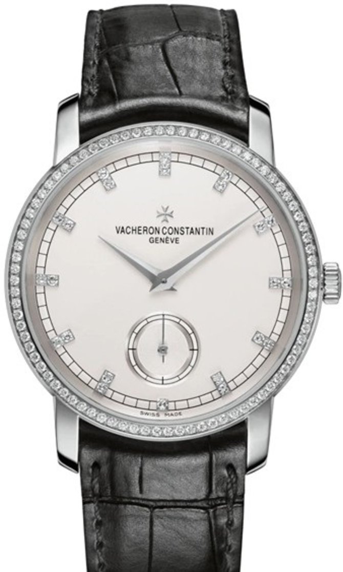 Компания из Швейцарии Vacheron Constantin представила модель классических часов Traditionnelle Small Second Hand Wound 38 mm 82572/000G-9605 в корпусе из белого золота, диаметром 38 х 7.77 мм. Часы пополнили коллекцию Traditionnelle. На белом циферблате, где установлены золотые стрелки и часовые метки в виде бриллиантов, показываются данные часов, минут и секунд. Ремень из кожи аллигатора черного цвета оснащен пряжкой из белого золота классического типа. Циферблат защищен стеклом из сапфирового кристалла. Корпус имеет 30-метровую влагостойкость. За функциональность часов отвечает механический механизм мануфактурной разработки компании Vacheron Constantin - 4400 AS. Часы выпущены в 2020 году.
