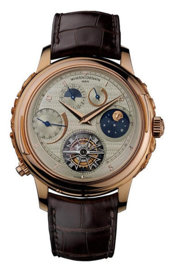 Традиционная престижная швейцарская часовая марка Vacheron Constantin представила модель "Atelier Cabinotiers Vladimir" с широким функциональным набором. Из основного: репетир, вечный календарь, запас хода, турбийон, второе время. Круглый часовой корпус, диаметром 47 мм, выполнен из розового золота. Модель выполняет свои функции на мануфактурном механизме с Женевским Клеймом. Он функционирует от ручного подзавода. Ремешок, которым компания Vacheron Constantin укомплектовала данные часы, пошит из кожи крокодила. Застежка классическая. Год выпуска - 2011.