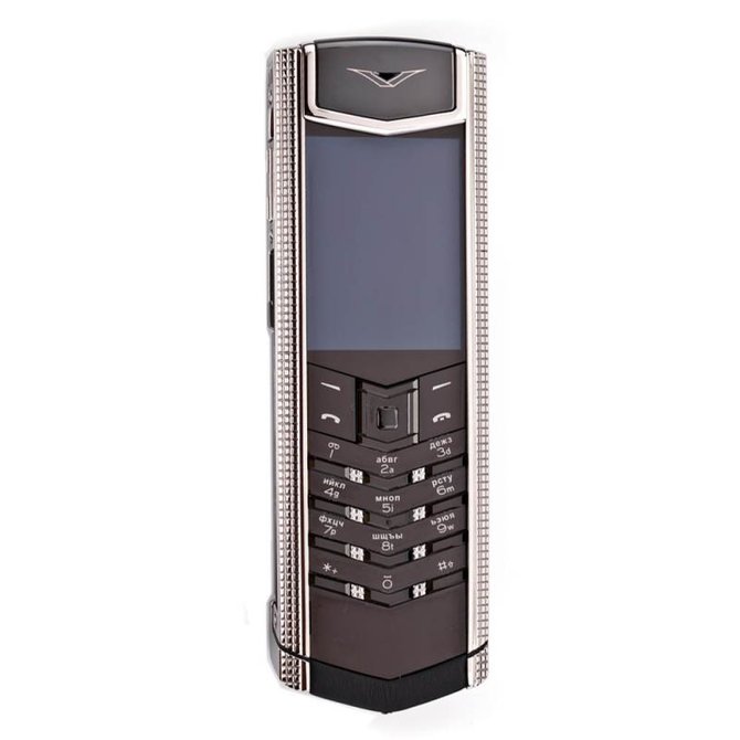 Мобильный телефон Signature S Design Clous De Paris Steel, выпущенный британской компанией VERTU, специализирующейся на производстве мобильных телефонов и предметов роскоши. Примечательно, что сборкой телефона вручную занимался один мастер. Руссифицированная клавиатура с линейными подшипниками из рубинов, обеспечивающих идеальное и плавное нажатие, является запатентованной брендом. Все рингтоны аппарата исполнялись Лондонским симфоническим оркестром. Общая память - 4 Гб. Корпус изготовлен из стали. Габариты корпуса: 130 x 42 миллиметров - диаметр; 13 миллиметров - толщина. Цена на телефон, рекомендованная производителем, составляет 15 000 EUR. Корпус гильоширован вручную.
