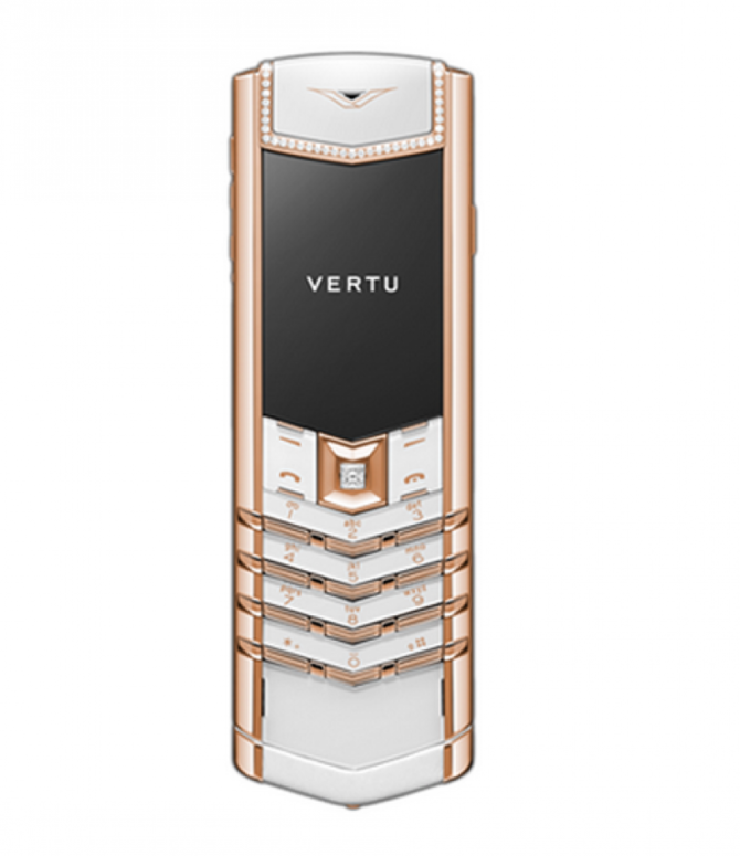 Роскошный элитный мобильный телефон представлен элитной компанией со всемирно известным именем Vertu в традиционном корпусе прямоугольной формы, изготовленном из розового золота. Представленная модель телефона Vertu имеет такие габариты: 130 х 42 миллиметра - диаметр; 13 миллиметров - толщина. Клавиатура, с нанесением кириллических и латинских символов, стоит на линейных подшипниках из рубинов. Такой способ производства запатентован компанией Vertu. Эксклюзивные услуги персонализации компании Vertu – это возможность воплотить в Vertu свою индивидуальность, а история бренда Vertu - это история постоянных инноваций и стремление предоставлять вам только самое лучшее. Телефон функционирует на операционной системе "Series 40". Одна модель выполняется одним мастером вручную. Дисплей под защитой поликристалла сапфира. Брендовые рингтоны телефона - результат труда Лондонского симфонического оркестра.