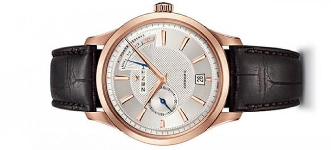 Наручные часы Zenith Captain Captain Power Reserve ref. 18.2120.685/02.C498 Механизм - автоматический, Калибр Zenith Elite 685. Корпус - розовое золото 18к. Циферблат - серебристый гильошированный. Ремешок - кожа аллигатора с вставкой из нержавеющей стали. Водонепроницаемость 50 м. В качестве особой рекомендации для руководства часовой мануфактурой использовалось доверие главы концерна LVMH Бернара Арно - самого богатого человека во Франции, между прочим, - и полученную вместе с тем свободу действии для радикальной перестройки старинного бренда. Тьерри Натаф так говорит сегодня о «новом основании» Zenith: «Оно происходило в несколько этапов и на всех уровнях. С одной стороны, стартовала новая рекламная кампания, которая сопровождалась широкой обработкой общественного мнения и в основу которой были взяты афоризмы знаменитых персонажей из областей политики и искусства, из прошлого и настоящего времени, как, например: «Великие люди подобны метеоритам, назначение некоторых из них состоит в том, чтобы сжечь себя для того, чтобы осветить свой век» (Наполеон Бонапарт), или: «Другие ищут. Я нахожу» (Пабло Пикассо).