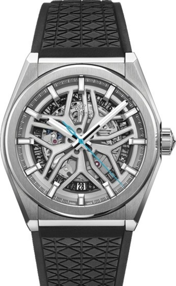 Часовой бренд Zenith и автомобильная компания Land Rover совместно выпустили наручные часы Defy Classic Range Rover 95.9001.670/77.R791. Титановый корпус, диаметром 41 х 10.75 мм, содержит внутри себя автоматический калибр Elite 670 SK с запасом хода на 48 часов. Под защитой сапфирового стекла находится скелетонизированный циферблат, где показываются часы, минуты, секунды и дата. Стекло покрыто противобликовым покрытием. Ремешок из каучука с тиснением в стиле шины автомобиля оснащен классической застежкой из титана. Водостойкость корпуса модели - 100 метров. Часы Defy Classic Range Rover 95.9001.670/77.R791 выпущены ограниченной серией - 200 экземпляров.