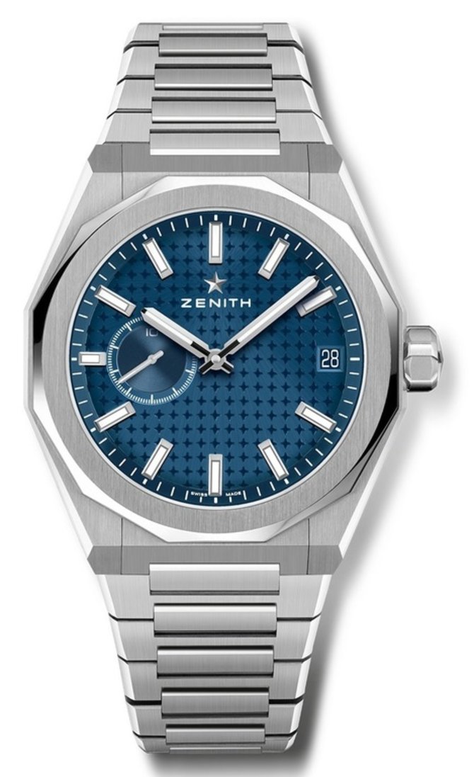 В круглом корпусе из нержавеющей стали, что укомплектован стальным браслетом с раскладной застежкой, компания Zenith презентовала модель швейцарских наручных часов Defy Skyline 03. 9300. 3620/51. I001 на базе автоматического калибра El Primero 3620 с запасом хода на 60 часов работы. На синем циферблате, защищенном стеклом из сапфирового кристалла с противобликовым эффектом, показываются часы, минуты, секунды, дата. Часовая разметка со стрелками покрыты люминесцентным составом. Водонепроницаемость корпуса рассчитана на 100 метров. Год выпуска часов Zenith Defy Skyline 03. 9300. 3620/51. I001 - 2022.