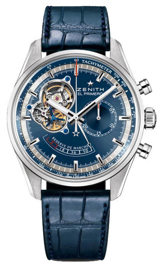Чарльзу Вермо (Charles Vermot) – сотрудник ZENITH в отделе хронографов, в 1975 году поручили уничтожить чертежи и механизмы с ручным подзаводом, поскольку начался ажиотаж на кварцевые часы. Когда же в 1980-х увлечение кварцевым механизмом утих и механические наручные часы начали возвращаться в мир, у ZENITH были все средства для воскресения механического хронографа, запущенного 1969 года. А Чарльз Вермо часовая компания наградила за неповиновение. El Primero Chronomaster Tribute to Charles Vermot выпущены ограниченным тиражем 1975 экземпляров, означающих год, когда Вермо спас механизм El Primero от свалки. Механизм с ручным заводом, калибр мануфактурный 4021, 248 деталей, где 39 камней, частота колебаний 36600 пк/ч. Хронограф с центральной секундной стрелкой и 30-минутным счетчиком, размещенным в области «3 ч», который может быть использован в дополнении к тахометрической шкале, секундный циферблат в области «9 ч», индикатор запаса хода в области «6 ч». Стрелки и часовые маркеры родиевые с люминесцентным покрытием. Новый El Primero Chronomaster Power Reserve Tribute to Charles Vermot имеет корпус диаметром 42 мм из нержавеющей стали с темно-синим циферблатом. Сапфировое стекло с антибликовым покрытием с обеих сторон, а также сапфировое стекло с обратной стороны корпуса. Ротор украшен «Cotes de Geneve». Ремешок из кожи аллигатора с резиновым покрытием и стальной раскладывающейся застежкой.