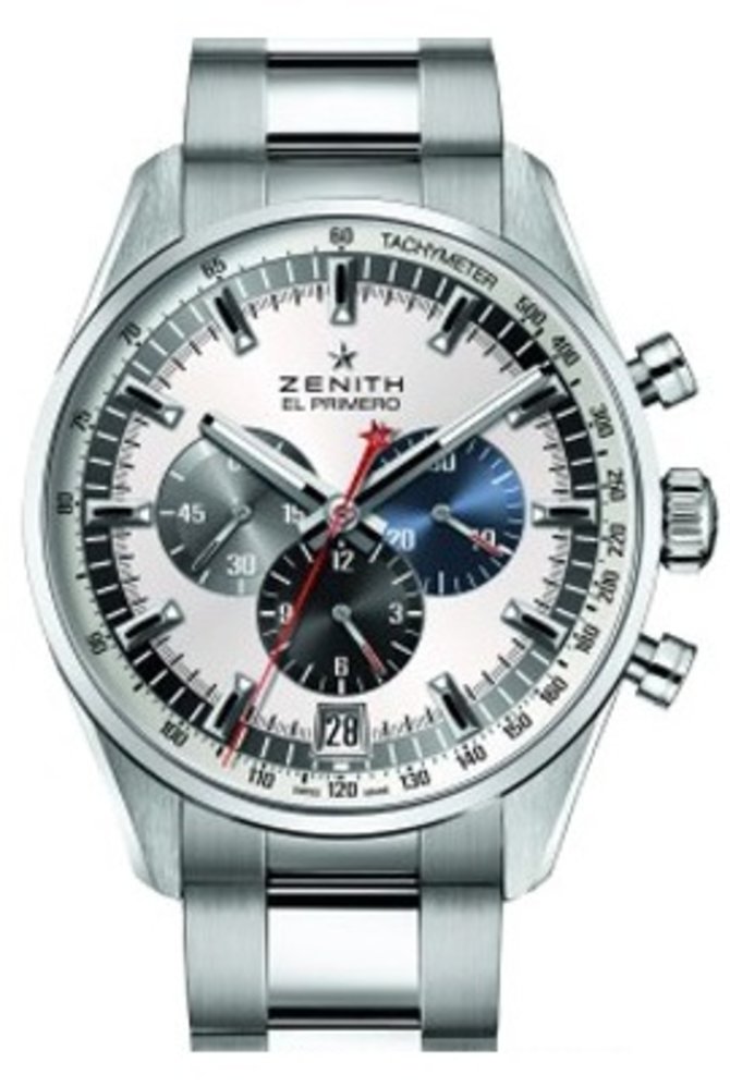 Часовая мануфактура Zenith выпустила наручные часы с мануфактурным часовым механизмом El Primero 400 B, обладающим балансовой частотой 36 000 пк/час, 50-часовым запасом хода, функцией хронографа и автоматическим подзаводом. Круглый 45-миллиметровый корпус выполнен из нержавеющей стали. Толщина корпуса - 14.05 мм. Циферблат защищает прочное сапфировое стекло. В комплекте - стальной браслет с раскладной застежкой. Герметичность стального корпуса - 100 метров. Год выпуска представленных часов - 2016.