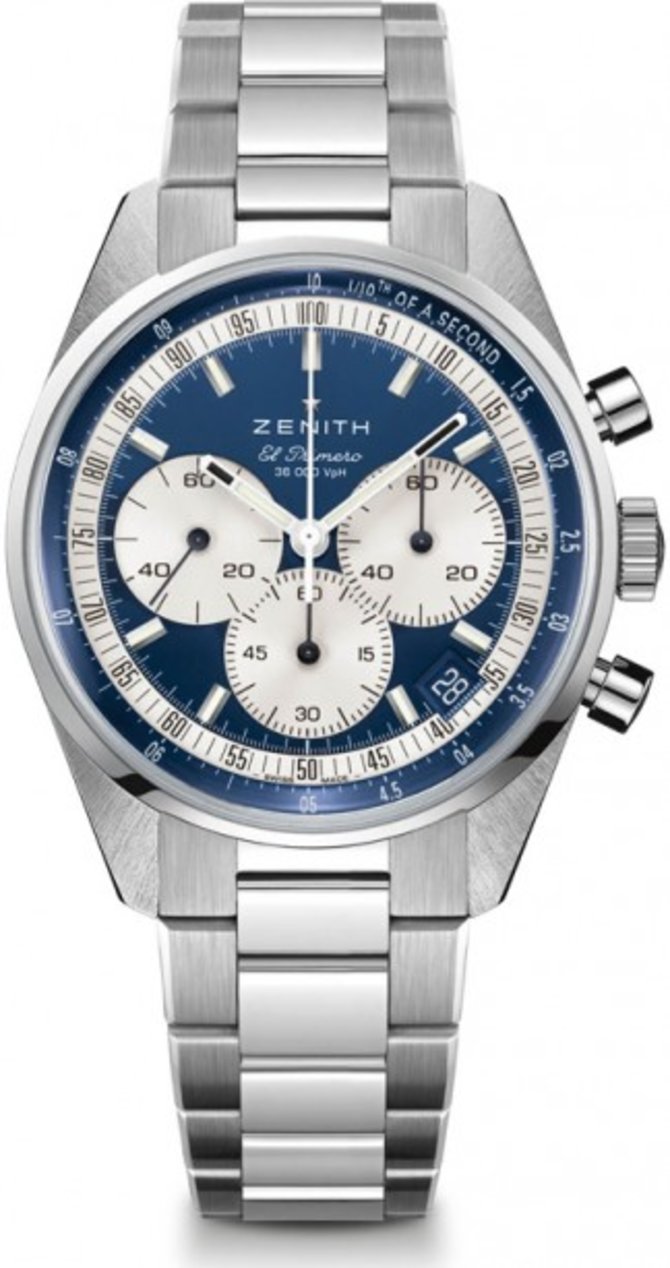 Часовая мануфактура Zenith представила наручные швейцарские часы с хронографом Chronomaster El Primero - 38.00 03.3200.3600/51.M3200. Круглый часовой корпус выполнен из нержавеющей стали в диаметре 38 мм и дополнен стальным браслетом с раскладной застежкой. Внутри корпуса установлен автоматический калибр El Primero 3600 с хронографом и запасом хода на 60 часов работы. Размер корпуса: 38 х 13 мм. Под сапфировым стеклом с противобликовым покрытием показываются данные: часы, минуты, секунды, дата. Корпус герметичен до 50 метров.