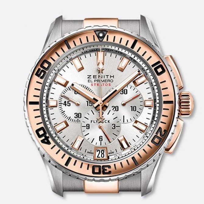 Старинная часовая мануфактура Zenith за последние семь лет претерпела значительную метаморфозу. Некоторые говорят, что пришло время будить «спящую красавицу», другие жалуются на смену курса и значительное повышение цен. Но новая команда под руководством Тьерри Натафа уже миновала первый этап на пути к своей цели: Zenith снова у всех на устах. Продажа наручных часов Zenith El Primero Stratos Flyback Silver Steel Rose Gold Bicolor 2013 ref. 51.2061.405/01.M2060 Славные традиции создания военных хронографов Zenith с увеличенным размером на черном каучуковом ремешке.