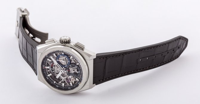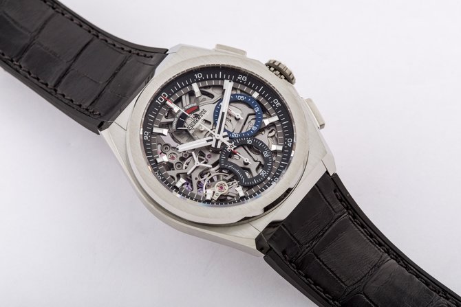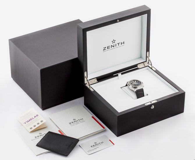 Zenith El Primero Defy - это модель наручных механических часов, разработанных на швейцарской мануфактуре Zenith. Часы имеют круглый корпус, который изготовлен в стенах мануфактуры из матового титана. Корпус, диаметром 44 мм и толщиной 14.5 мм. Защитное лицевое стекло - сапфировое. Под ним осуществляется индикация часов, минут, секунд, запаса хода механизма и данных функции хронографа. За выполнение функций, что заявлены брендом, отвечает мануфактурный механизм с автоматическим подзаводом - калибр El Primero 9004. Часы имеют запас хода до 50 часов. Строгий черный ремень из крокодиловой кожи и титановая застежка обеспечат надежную фиксацию на запястье. 100-метровый уровень водонепроницаемости корпуса дает возможность владельцу спокойно мыть руки в часах, мыть машину, принимать душ, купаться в водоеме и нырять до 100 метров глубины.