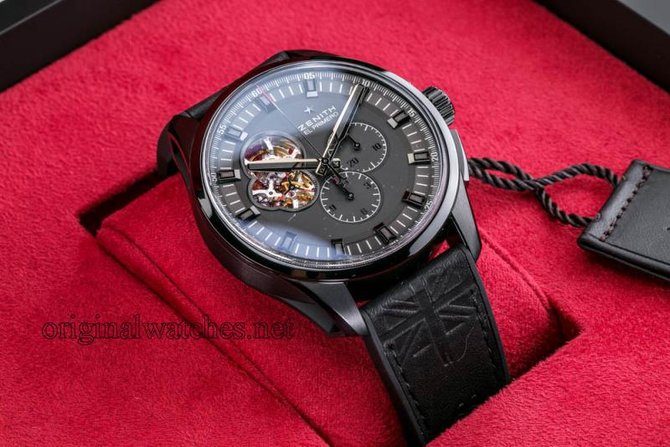 Данная модель выпущена в честь легендарной группы Rolling Stones; часы украшены их знаменитым логотипом. Частично скелетонизированный циферблат открывает вид на знаменитый первый автоматический хронограф El Primero. Анкер, а также анкерное колесо модели выполнены из кремния. Балансовая частота механизма 36 000 пк/ч (5 Гц). Запас хода - минимум 50 часов. Ротор часов с отделкой «Côtes de Genève». Модель оснащена тахиметрической шкалой. Корпус модели выполнен из титана с DLC-покрытием. Размеры корпуса: диаметр - 45 миллиметра; толщина - 14 миллиметров. Защитное сапфировое стекло с двусторонним антибликовым покрытием. Задняя крышка также из сапфирового стекла. Часовые метки и стрелки фасетные, с родиевым напылением и люминесцентным покрытием SuperLuminova.