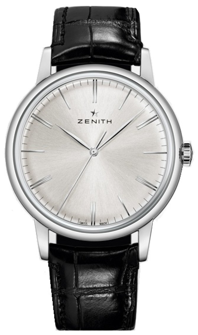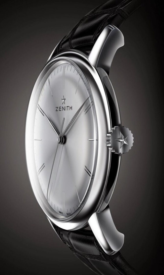 Наручные часы легендарной часовой марки Zenith в ультратонком корпусе, диаметром 42 миллиметра. Запас хода механизма более 100 часов. Калибр с двумя заводными барабанами. Механизм автоматический. Ротор с отделкой «Côtes de Genève». На классическом циферблате показан классический набор функций - часы, минуты и секунды. Корпус выполнен из нержавеющей стали. Выпуклое сапфировое стекло с двусторонним антибликовым покрытием. Задняя крышка также из сапфирового стекла. Герметичность корпуса - 50 метров. Стрелки фасетные, с родиевым напылением. Ремешок из черной кожи аллигатора с подкладкой из каучука. Тройная раскладывающаяся застежка из нержавеющей стали. Звезда Zenith сияет и по сей день благодаря талантливым мастерам, унаследовавшим новаторский дух Жоржа Фавра-Жако. Непревзойденное мастерство и творческая смелость позволяют им следовать за своей звездой и изо дня в день на протяжении уже почти 150 лет выполнять предназначение одной из самых новаторских часовых Мануфактур.